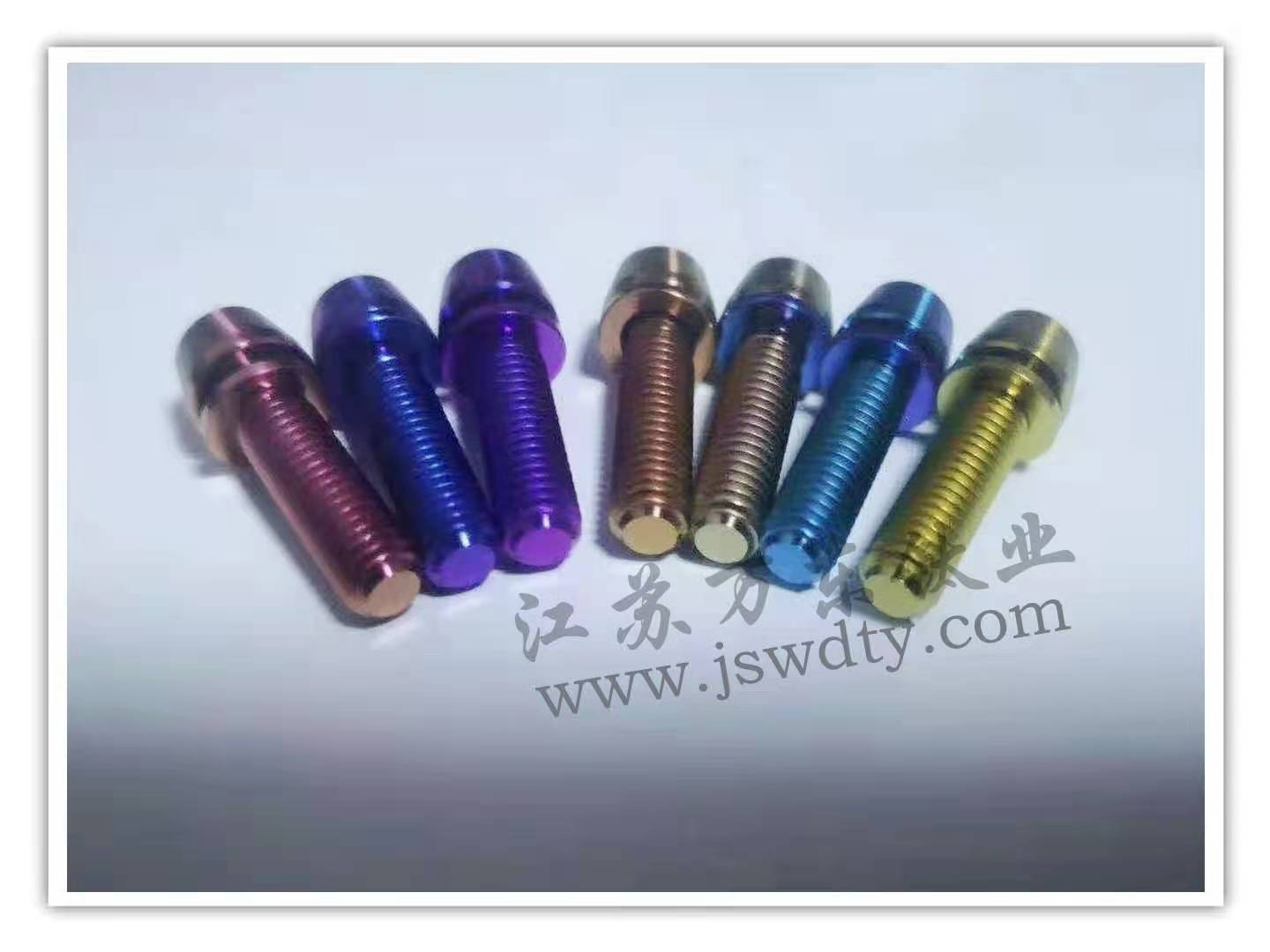 江蘇萬(wàn)東鈦業(yè)科技有限公司坐落于中國(guó)江蘇省南通市,擁有28年的鈦合金研發(fā)技術(shù),公司專(zhuān)業(yè)從事:鈦陽(yáng)極氧化、鈦合金陽(yáng)極氧化、脈沖氧化。鈦合金緊固件生產(chǎn):M0.6以上高品質(zhì):螺絲、螺母、螺柱、螺套、可根據(jù)用戶(hù)的特殊要求定制。